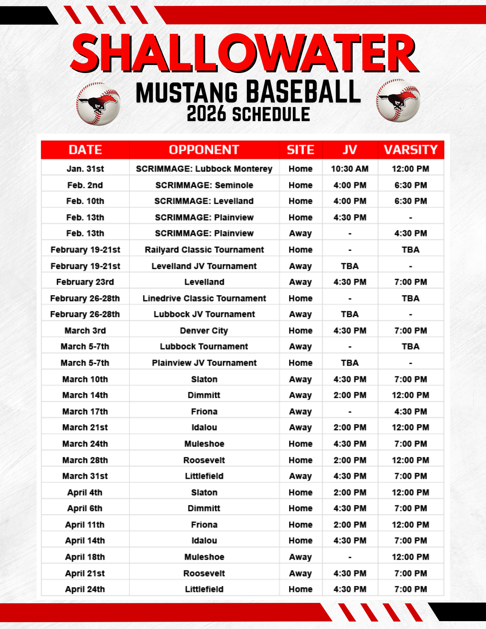 Mar 28 / 12:00 PM VS Lubbock Roosevelt |
