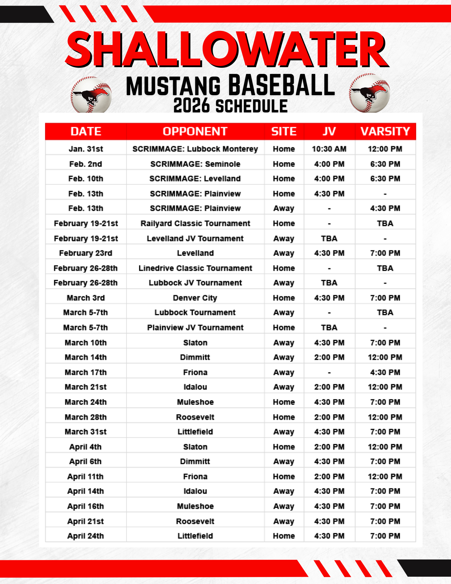 Mar 28 / 12:00 PM VS Lubbock Roosevelt |