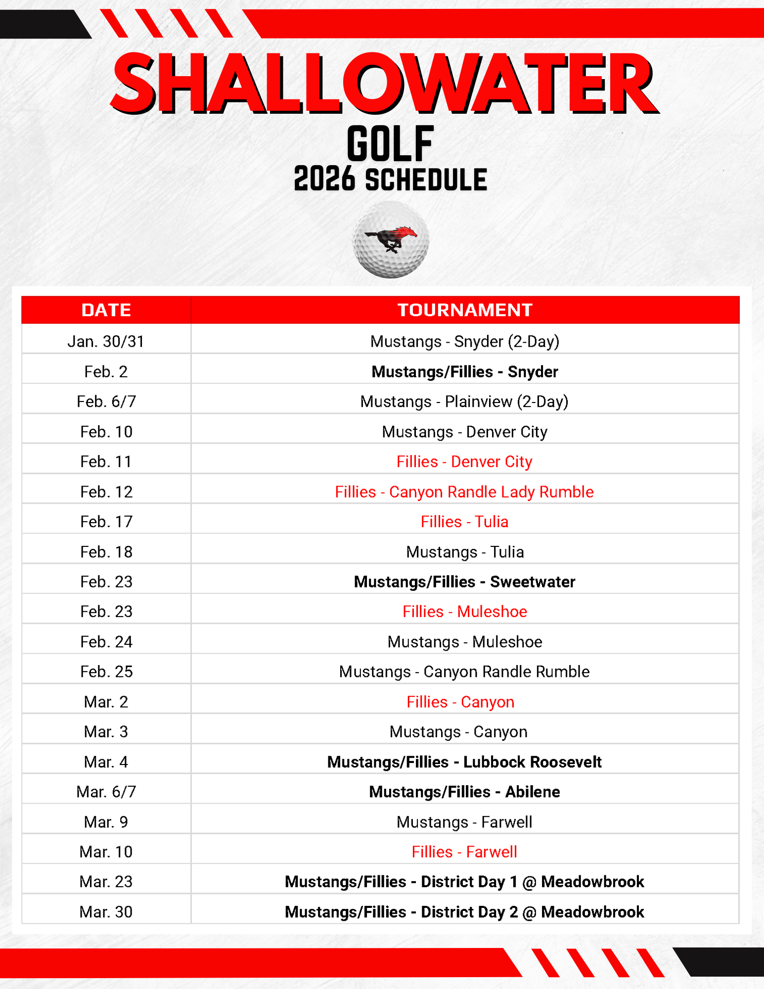 2026 GOLF SCHEDULE