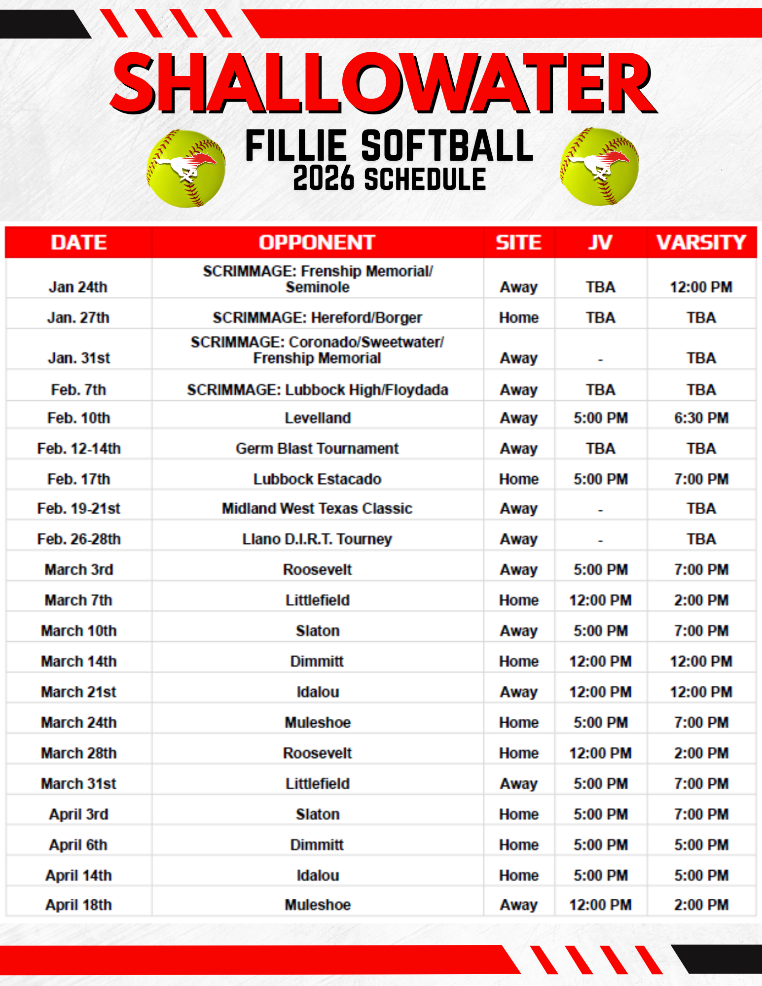 2026 JV/VARSITY SOFTBALL SCHEDULE